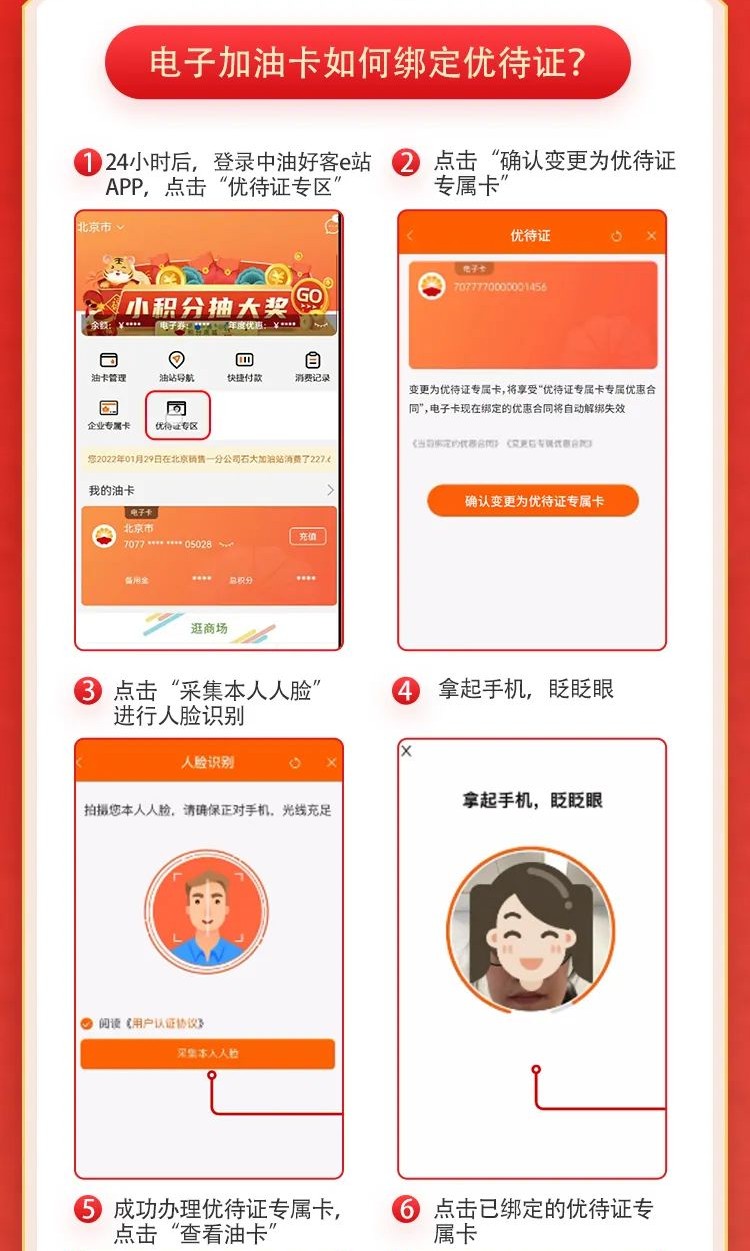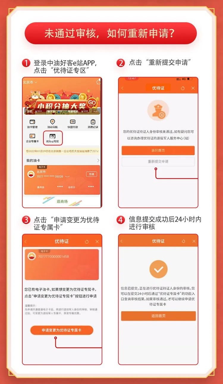 2.为持优待证的烈士遗属、参战参试退役军人、残疾退役军人、服役期间荣获二等功及以上奖励的退役军人等,日常生活所需的机动车,成功注册中国石油电子卡,并成功绑定优待证,持优待证专属卡加汽油(92号 95号、98号)提供“每周首单优惠”,即持证人每周在中国石油所属自营加油站加注的第一单汽油时享受94折优惠。